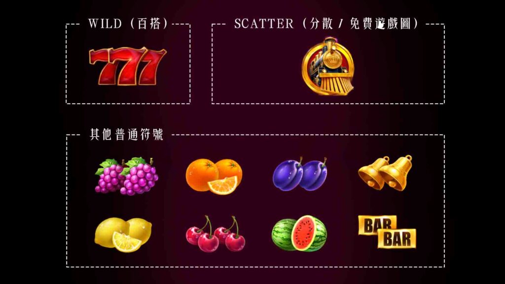 金幣、火車 Scatter、BOOST、WILD 都是關鍵符號,出現組合越多,獎勵越翻倍。