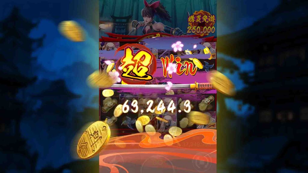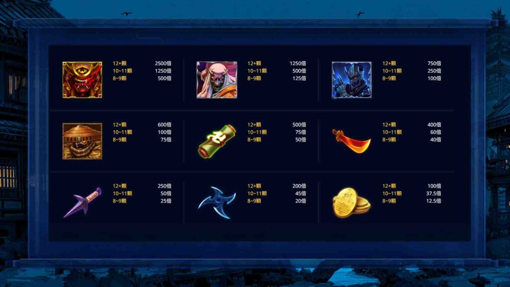 不得不說,RG電子這款遊戲在畫面設計上相當有水準。遊戲背景設在一個神秘的日本忍村,風格融合夜晚場景、飛舞落櫻,加上角色動作細節都很流暢,給人一種沉浸感十足的體驗。
