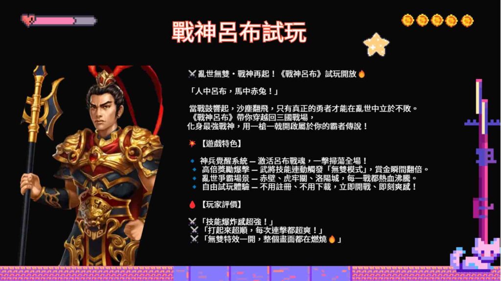🎮【戰神呂布試玩連結】: