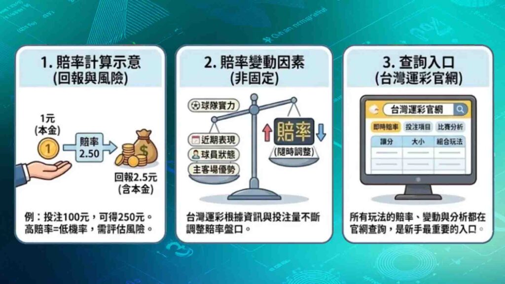 很多新手看到賠率都是一臉懵,什麼1.8、2.1、甚至 5.5,這些數字到底代表什麼意思?其實賠率就是「你下注 1 元,中了會拿回多少錢(含本金)」。所以賠率 2.0,就是中獎你拿 2 元;賠率 1.5,就是中獎拿 1.5 元。