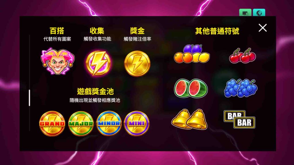 - 填滿所有格子 → 直接拿 Jackpot